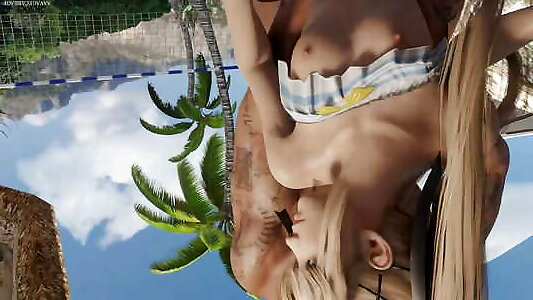 Tropical island outdoor hump for this beautiful ash-blonde with a monstrous bum