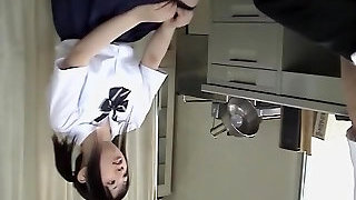 In home Japanese nurse washes his lollipop before cleaning in the