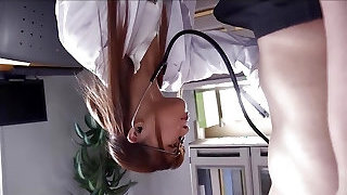 Asian Brunette nurse Shino Aoi in the therapist's office in oral action uncensored.