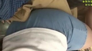 Sexy Asian babe with a hairy pussy enjoying a gonzo MMF threesome on a bus