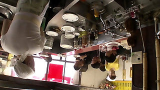 Kitchen maid in Asia Supermarket gets pounded by every man in the Shop