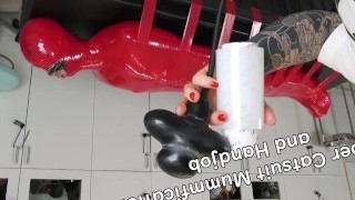 Love Glove Catsuit Mummfication and Hand-job ラバーでマミフィケーション手コキ