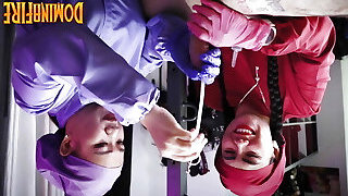 Fejira com Latex-clad maids wear face masks to ejaculation