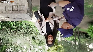 Two Japanese Nymphs Have 3some With A Muscled Guy In