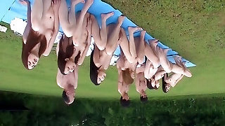 Hardcore gang fuck with naughty Japanese nymphs in the open air, warming up the XXX vignette.