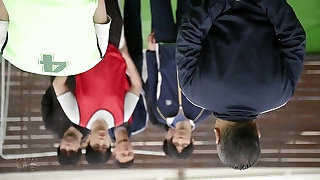 Amateur Japanese cheerleader is fucked in the locker guest room by three horny men