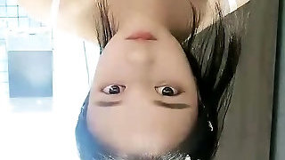 瘦漂亮的亚洲女孩自慰她漂亮的剃光猫与一个大的假阳具上的摄像头
